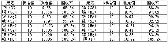 接纳本体例测试光滑油金属含量光谱阐发规范物资GBW(E)130129、GBW(E)130132,对照现实测定值与规范值,得出现实测试的收受接管率,获得精确度数据,成果见下表
