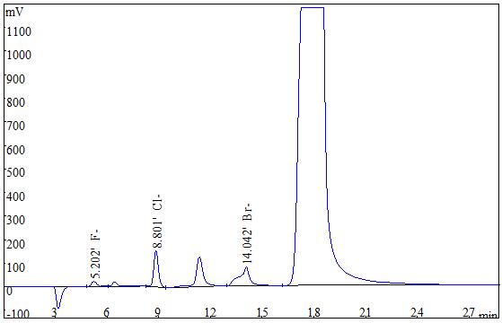 图4 2.0µg/mL F-、Cl-、Br-反反复复性测验谱图