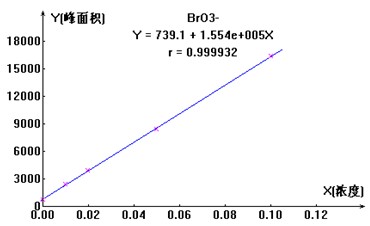 由尝试数据可知,离子色谱法测试水中BrO3-阴离子精确度高,检出浓度低,体例简略快速,完整知足环保行业对水中BrO3-离子检测的需要。