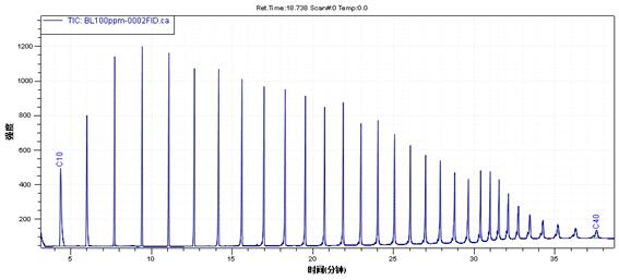 泥土和堆积物中的火油烃(C10-C40),经提取、净化、稀释、定容后,用带氢火焰离子化检测器(FID)的气相色谱仪检测,按照保留时候窗定性,外标法定量。按照火油烃(C10-C40)保留时候窗对方针化合物停止定性,即从正癸烷(包罗)出峰起头时起头,到正四十烷(包罗)出峰竣事时停止积分,计较火油烃(C10-C40)的总峰面积。